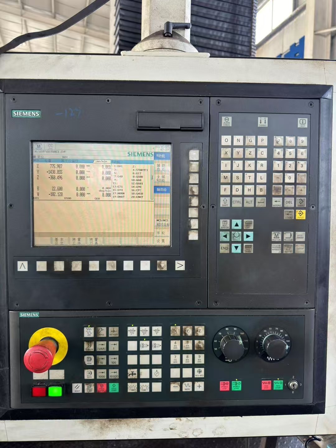 中捷6513数控刨台镗床。工作台1.6米*1.8米,三轴行程XYZ:2米*2米*1.6米,镗轴伸出800,转速3000,工作台任意角度旋转,西门子系统。带一个侧铣头. 设备在烟台 信息编号:S360653