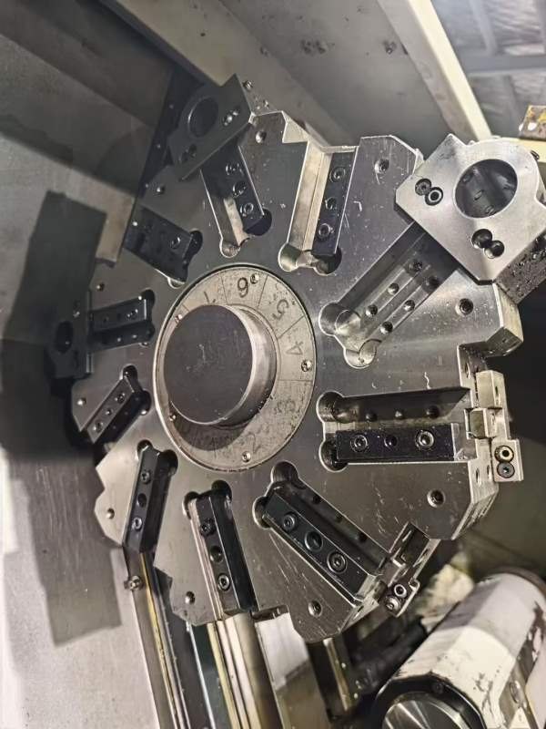 台中精机V26/1100加长款发那科TD,阿尔法电机驱动,两轴硬轨,车削范围:290-1100,车削直径:380两顶心距离:650主轴:A2-8,10寸,18.5KW棒材通孔:75转速:3500转,刀塔:10工位,刀具:刀方25,内孔50,尾座:MT4尾座直径:110芯轴行程:100 信息编号:S768610
