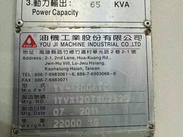 苏州工厂刚刚拿下台湾油机YV-1200ATC数控立车 12把刀库 方滑枕 发那科TD系统 机器试机完美 信息编号:S135471