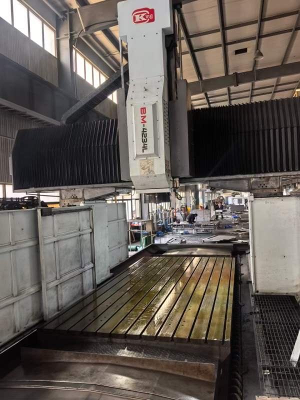 准新国祥BM4234L龙门加工中心发那科MFPLUS系统af电机驱动主轴BT50齿轮箱 6000转台湾吉辅头仓 台湾日申全自动90头台湾吉辅立卧两用60把链式刀库行程:-900门宽:2700 工作台:4200-2100过高:1400 两线一硬 螺旋排削机 链式排削机,2022年生产 信息编号:S650002
