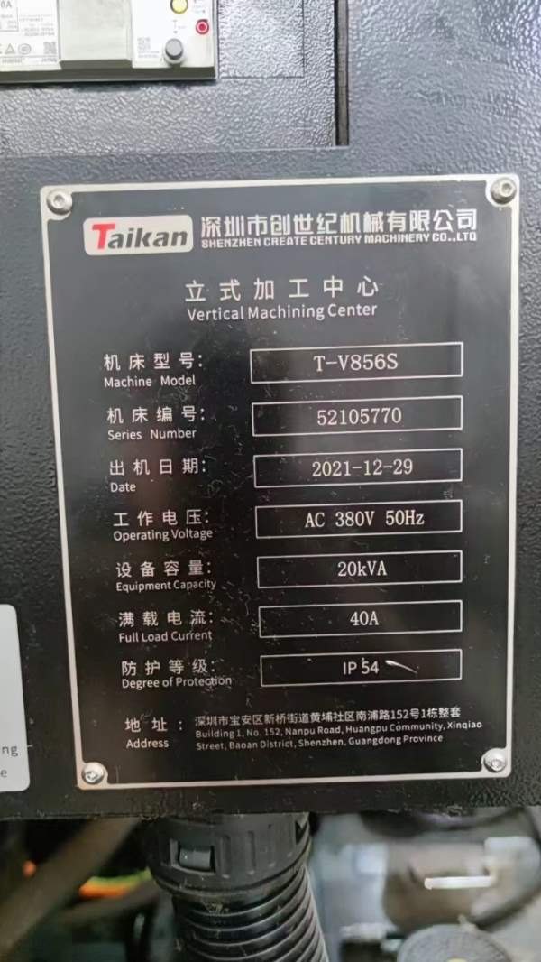 同款2台台群T-V856S立式加工中心年代: 2022年,使用时间2000多个小时系统:三菱M80主轴: BT40直连12000转24把私服机械手刀库三轴行程:800*550*600mm工作台尺寸:1000*500mm机床外形尺寸:2240*3100*2900mm机床重量:5000kg 信息编号:S521660