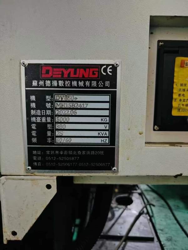 已卖一台还有俩台新到三台2022年德扬DV-850加工中心,发那科OI-MF Plus系统,带自动分中,BT40主轴直连12000转,主轴电机7.5-11KW ,24把刀臂式刀库,刀臂带变频,三轴台湾银泰滚柱线轨,三轴行程X:800 Y:500 Z:550 带主轴油冷机 信息编号:S225423