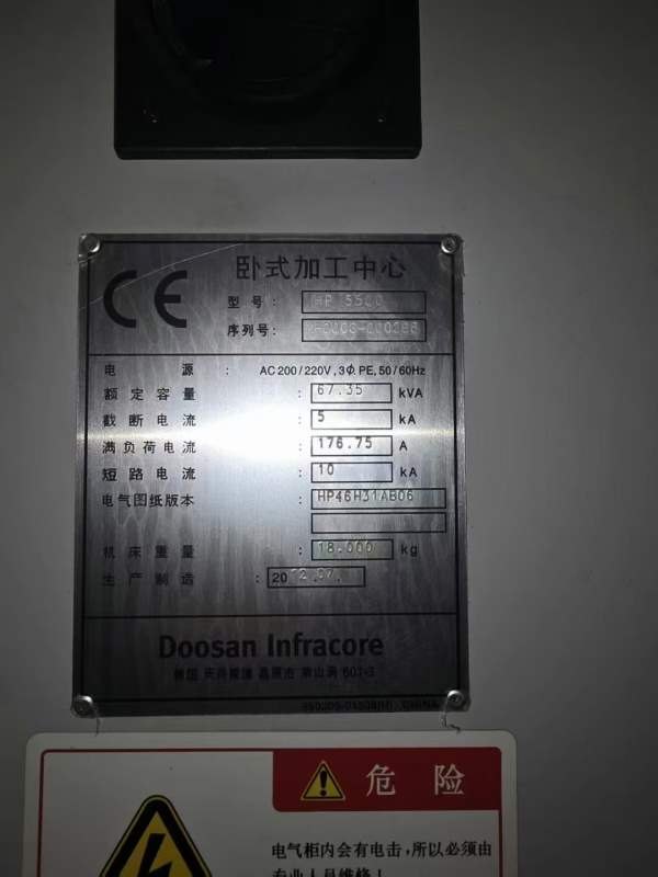 同款11台韩国原装斗山HP-5500卧加,轨道:三轴滚柱线规德国,主轴:BT50电主轴,10000转,带中心出水功率:主轴功率25/45千瓦刀库:60把链排刀库,系统:发那科31i高配系统行程:800-750-850 信息编号:S310671